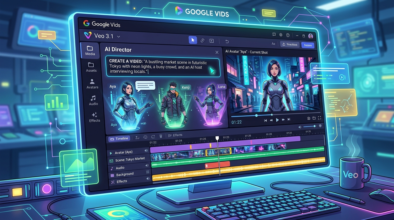 Google vient de transformer son éditeur vidéo Vids en un véritable studio de production IA. Avec l’intégration de Veo 3.1 pour la génération vidéo gratuite, de Lyria 3 pour la musique sur mesure et d’avatars IA dirigeables par texte, l’outil entre dans une nouvelle dimension. Voici ce que ça change concrètement pour vous.